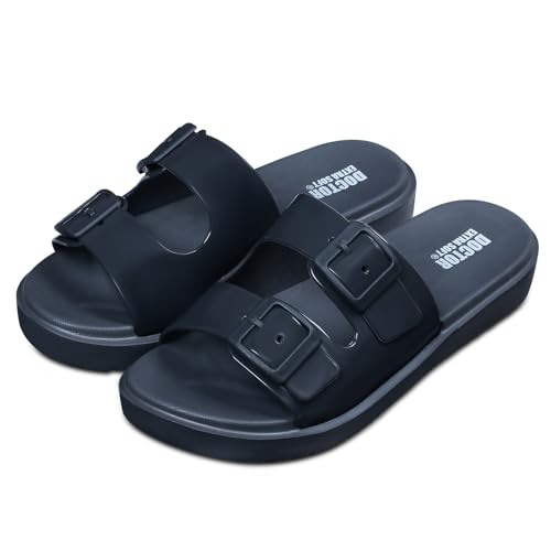 • {✔} DESIGNED TO FIT- The Design of these Doctor Extra Soft Slides is Simple & Classic, with an Adjustable 3D Buckle Style that Makes them Easy to Wear & Remove. The Women's Classic Slippers are Ideal for Everyday Use & Pair Well with All Kinds of Outfits. These Flip Flops are Easy to take on & off while being Extremely Durable. These Ultra Soft Sliders have a Spongy Cushion Footbed Which Gives Extra Comfort & Made with Water-Resistant Material,Making them Perfect for Wear in Wet/Damp Conditions