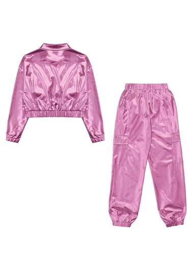 Boys Girls 2Pcs Tracksuit Shiny Metallic Dance Outfits Long Sleeve Jacket with Pants Set Hip Hop Jazz Dance 6