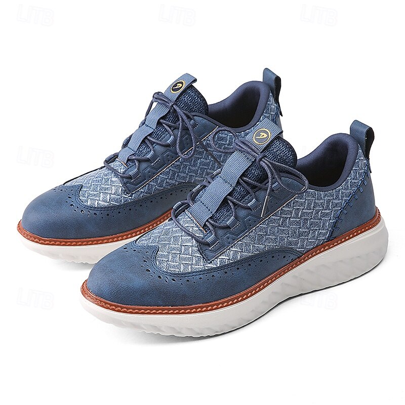 Men's Sneakers Blue Knit Lace-Up Shoes with Stylish Design and Cushioned Sole for Walking, Running and Everyday Use 36