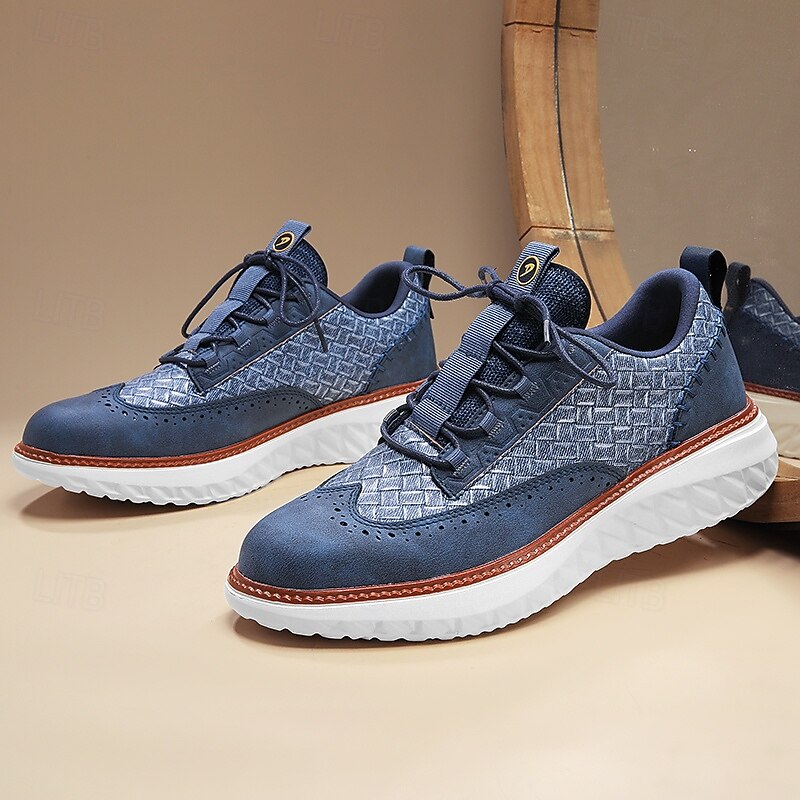 Men's Sneakers Blue Knit Lace-Up Shoes with Stylish Design and Cushioned Sole for Walking, Running and Everyday Use 35