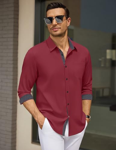 • COOFANDY MEN'S STRETCH DRESS SHIRTS: Men's long sleeve wrinkle free dress shirt are expertly crafted from a high-quality blend, offering a soft and comfortable feel. With meticulous attention detail, coofandy shirts are designed to be durable and withstand regular wear, ensuring long-lasting quality.