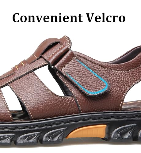 Mens Athletic Sandals Open Toe Outdoor Non-slip Leather Hiking Walking Trekking Fisherman Sandals Sport Casual Waterproof Beach Shoes 5