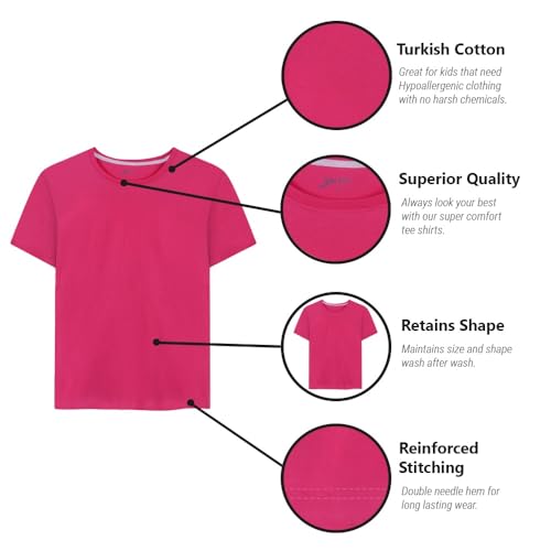Brix Girls Shirts 5 Pack - Short Sleeve Tees for Girls T-Shirts 100% Cotton Tagless Kids Fashion Summer Tops.
