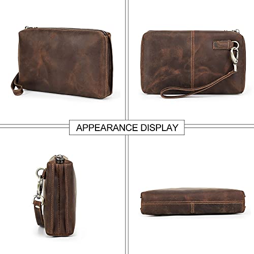 CONTACTS Mens Clutch Bag Leather Wallet, Crazy Horse Leather Vintage Clutch Wallet for Men Travel Wristlet Handbag Card Holder Phone Checkbook Purse
