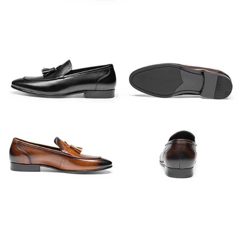 More information about Men's Leather Shoes Slip-On Low Top Round Toe Loafers Shoes Handmade Color Wiping Dress Business Commuter Casual Shoes Rubber Sole Anti-Slip Wear-Resistant