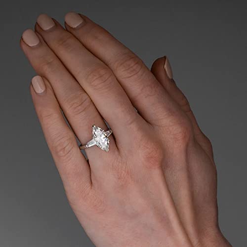 Classic Platinum Plated Marquise Cut and Baguette CZ Cubic Zirconia Engagement Ring 3-Stone Wedding Promise Rings for Her (US Size 7) 7