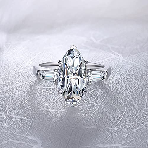 Classic Platinum Plated Marquise Cut and Baguette CZ Cubic Zirconia Engagement Ring 3-Stone Wedding Promise Rings for Her (US Size 7) 6