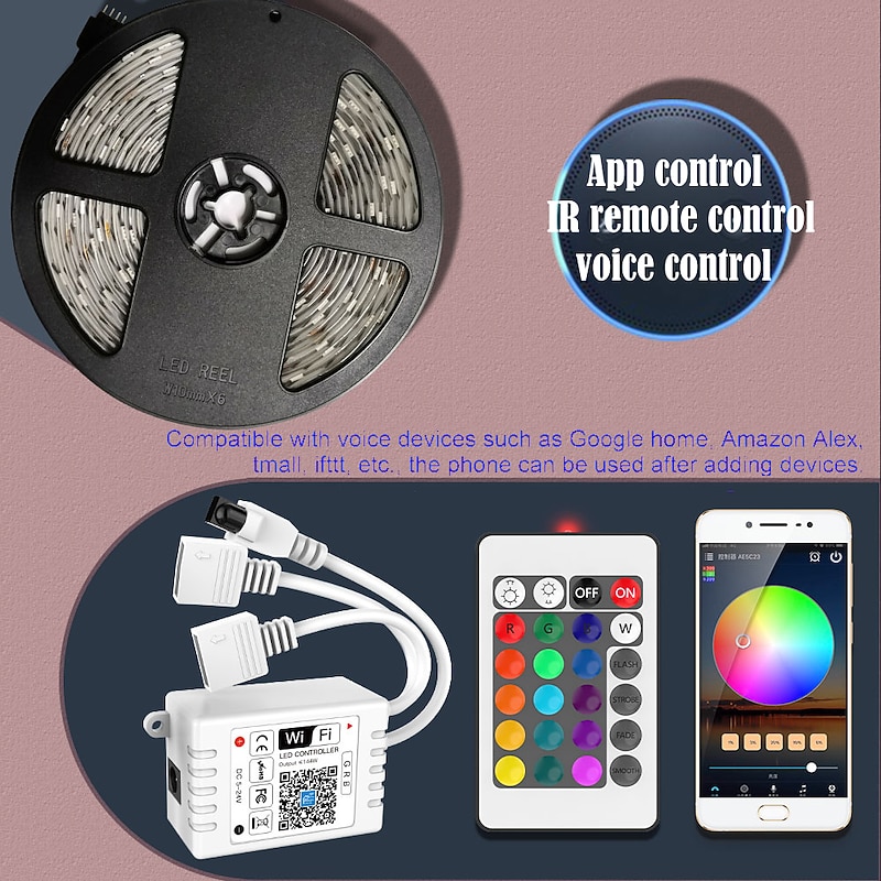 10m 32.8ft Smart App Control Flexible Led Strip Light 5050 RGB SMD 360 LEDs Work with Alexa Google 12V 4A Adapter Kit 21