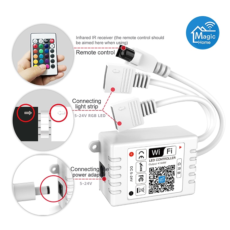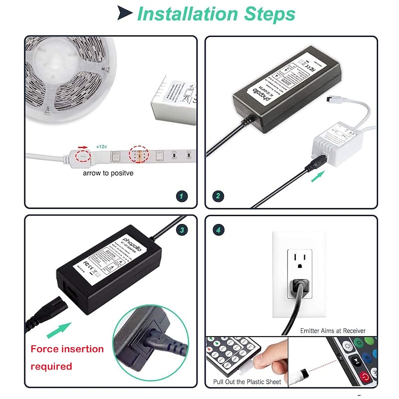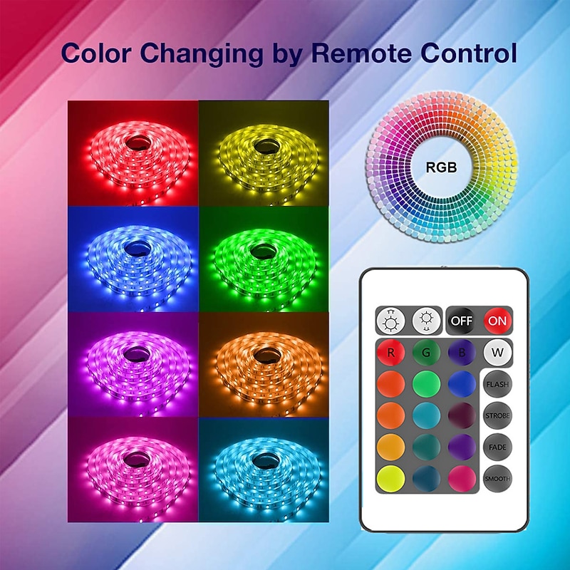 Highlights - SMD5050 LED strips offer a variety of light source colors including Red, Green, Blue, White, Orange, Pink, Purple, Yellow, and more. - Our remote control has a range of up to 3 meters when pointed directly at the receiver. - For lengths longer than 5 meters, it's important to wire your LED strips to your transformer in parallel instead of series. - We offer multiple power adapter options, so be sure to choose the appropriate one before placing your order.