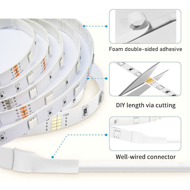 10m 32.8ft Smart App Control Flexible Led Strip Light 5050 RGB SMD 360 LEDs Work with Alexa Google 12V 4A Adapter Kit 11