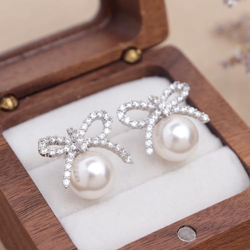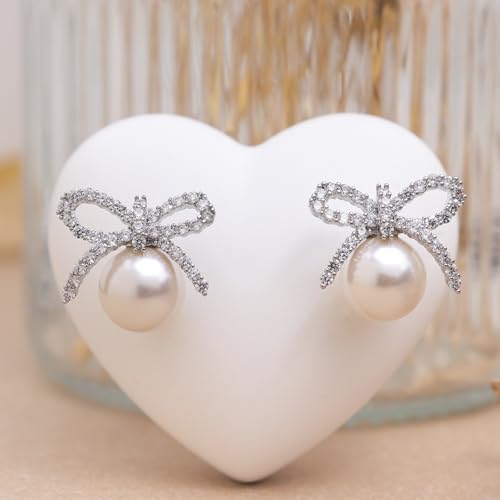 Jean Beau Gold Silver Pearl Bow Stud Earrings for Women, Dainty Pearls CZ Earring Wedding Prom Fashion Jewelry Gift 6