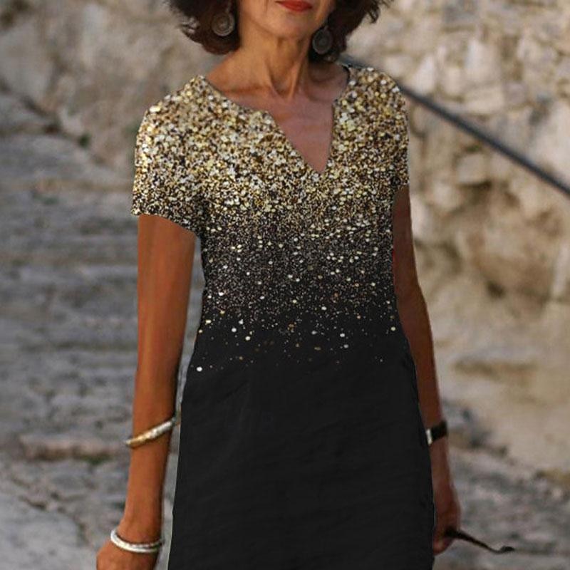 More information about Women's Midi Dress Cocktail Dress V-Neck Sequin Gradient Black Elegant Knee-length Party Evening Short Sleeve Regular Fit