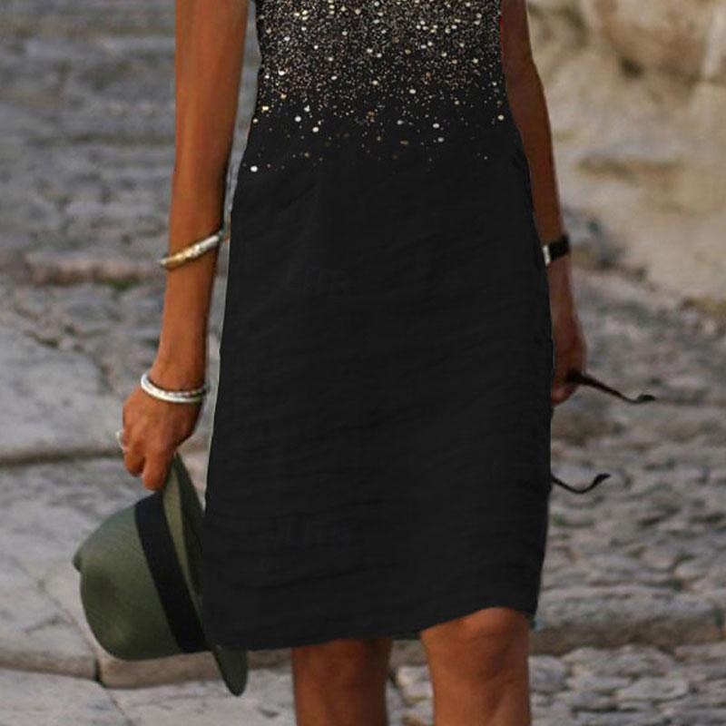 HOT ! Women's Midi Dress Cocktail Dress V-Neck Sequin Gradient Black Elegant Knee-length Party Evening Short Sleeve Regular Fit