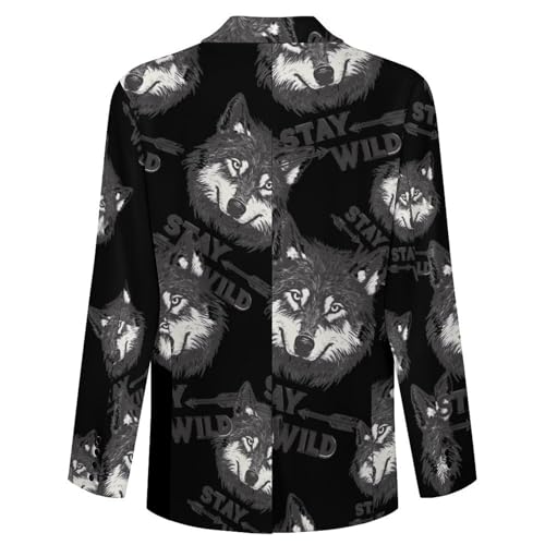 Stay Wild Wolf Adventure Mens Blazer Casual Two Button Lapel Suits Jacket Lightweight Business Coats 2