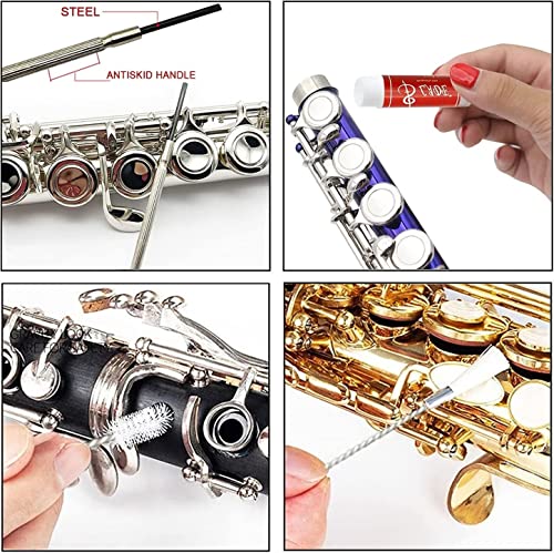 • ★ Long cleaning cotton brush is in metal handle and fluffy cotton body.The saxophone cleaning brush is 14.2 inch in length.So it is easy to reach the whole inner of the flute/clarinet/saxphone body and clean the inside tube very well. The flute cleaning kit is lightweight and portable.