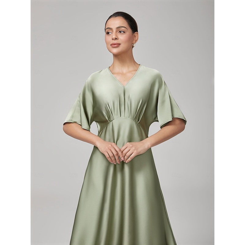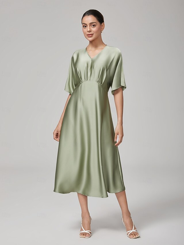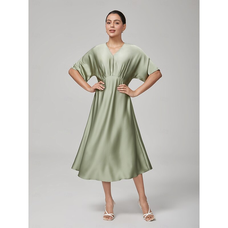 More information about Women's Midi Dress Reverse Pleat V Neck Dolman Sleeve Elegant Casual Daily Spring Summer Fall