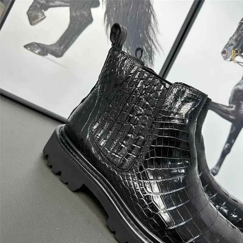 Authentic Crocodile Skin Men's Classic Black Chelsea Boots Genuine Exotic Alligator Leather Male Short Elastic Band Ankle Boots 1