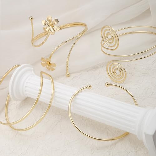 YVVLEE 4PCS Gold Silver Arm Cuff Jewelry for Women Upper Arm Cuff Bangle Band Armlet Adjustable Minimalist Coil Arm Armband Set 5