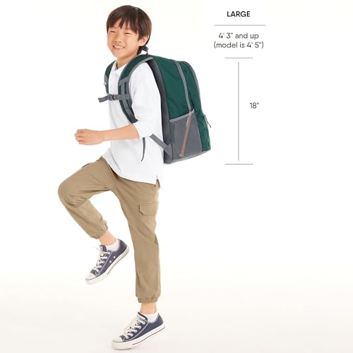 • Backpacks for ages 6-8: Size small for tiny tots to kids just starting school. Fits kids 3'6" - 4'; Size medium for younger elementary school kids. Fits kids 4'+ ; Size large for older elementary school kids. Fits kids 4'3"+ ; Size X-Large for middle schoolers and older. Fits kids 4'6"+