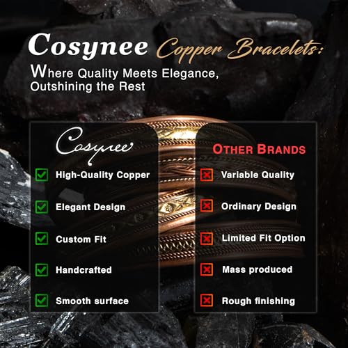 cosynee Premium Tibetan Copper Unisex Bracelets Set of 4 – 99.99% Pure Copper Cuff Bangles for Men & Women, Adjustable, Ultra Strength, Solid High Gauge Metal – Vintage Style with Gift Pouch