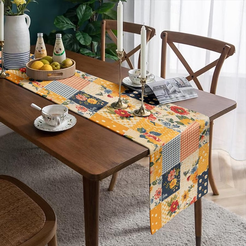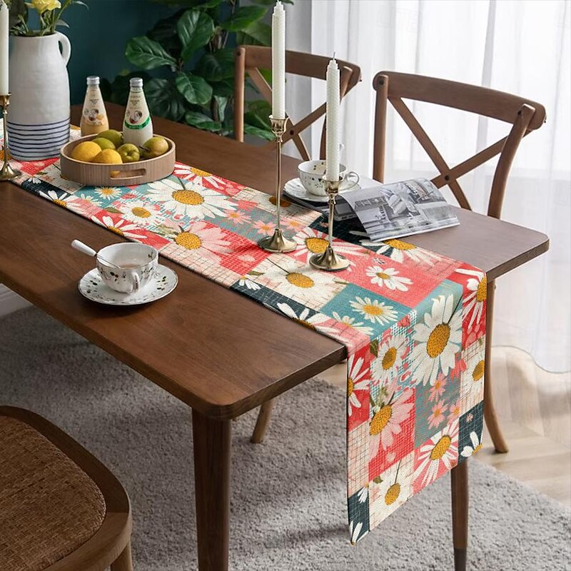 HOT ! Floral Print Country Style Table Runner, Kitchen Dining Table Decor, Print Decor Table Runners for Indoor Outdoor Home Farmhouse Holiday Wedding Birthday Party Decoration