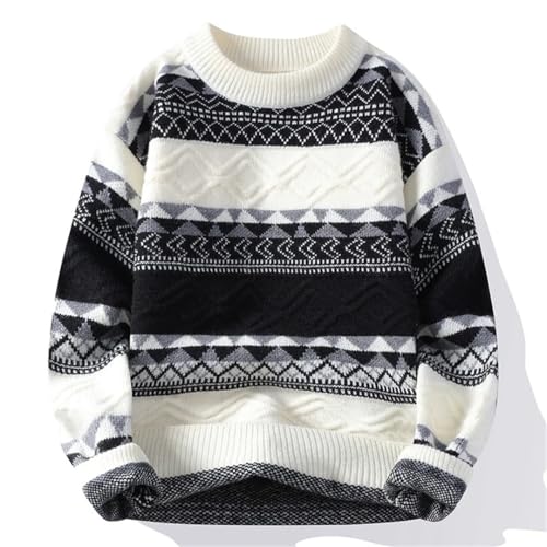 sought-after ! Mens Autumn Winter Casual Sweater Striped Patchwork Knit Pullovers O-Neck Loose Sweaters