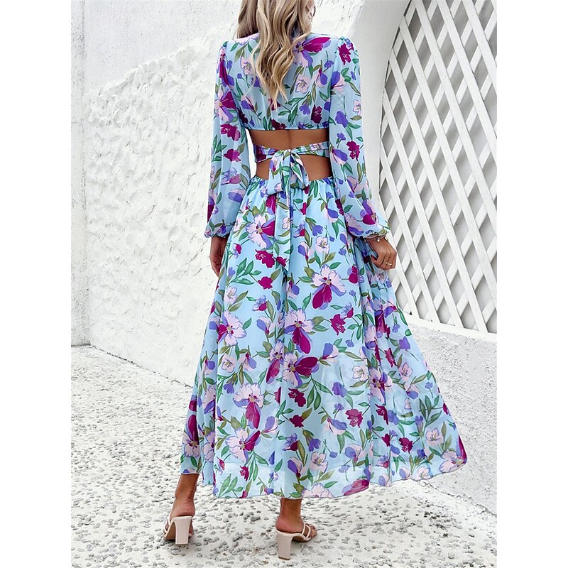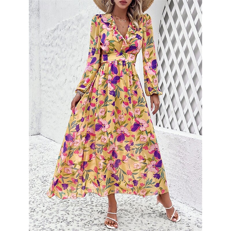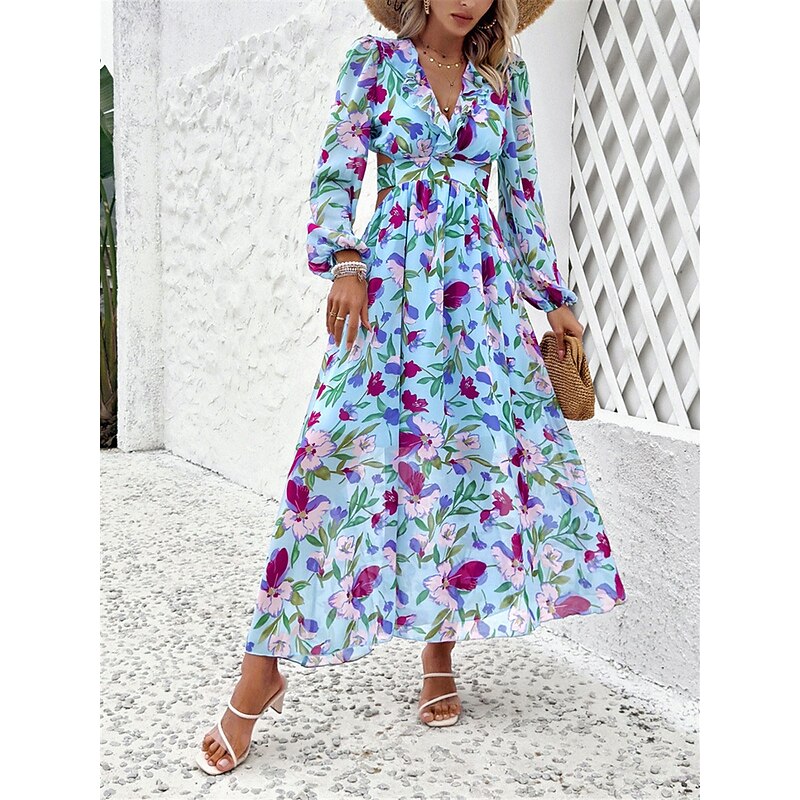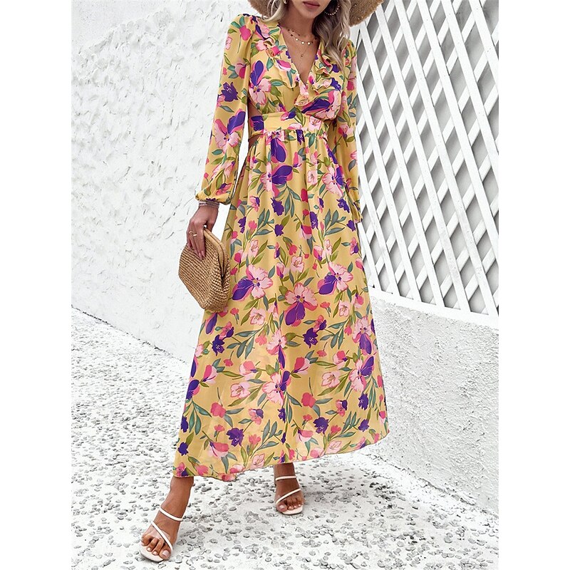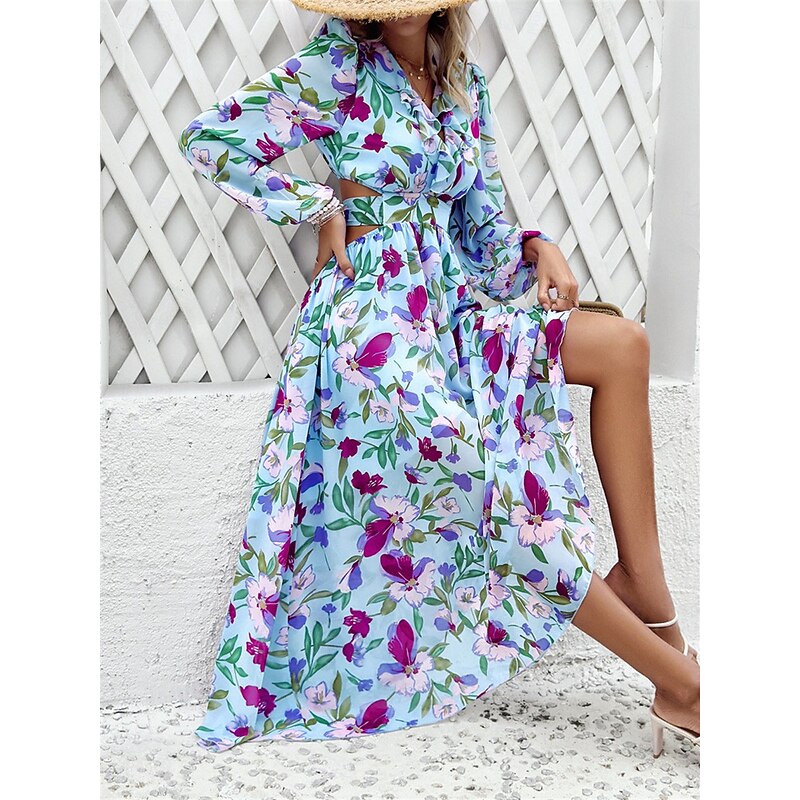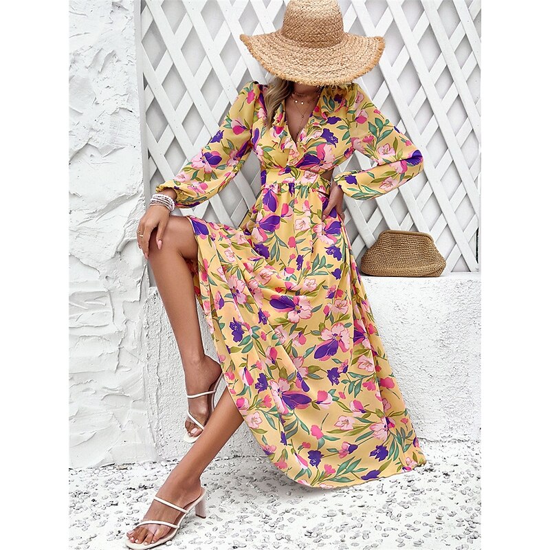 Women's Floral V Neck Maxi Dress Long Sleeve Summer Spring 2