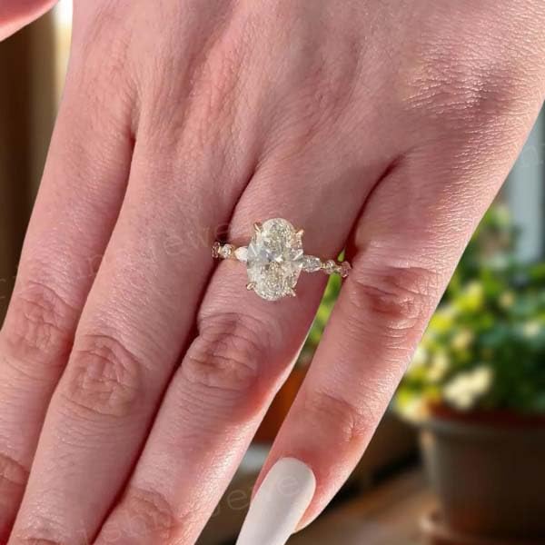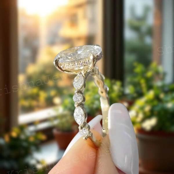 2 CT Oval Cut Moissanite Diamond Engagement Ring 14K Solid Gold Ring Side Diamond Round & Marquise Hidden Halo Promise Gift For Women 5