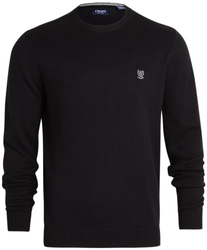 HOT ! Chaps Men's Big and Tall Sweater - Heavyweight Classic Fit Knitted Cotton Crewneck Pullover Sweater for Men (Sizes: L-4X), Size 3X-Large Tall, Black