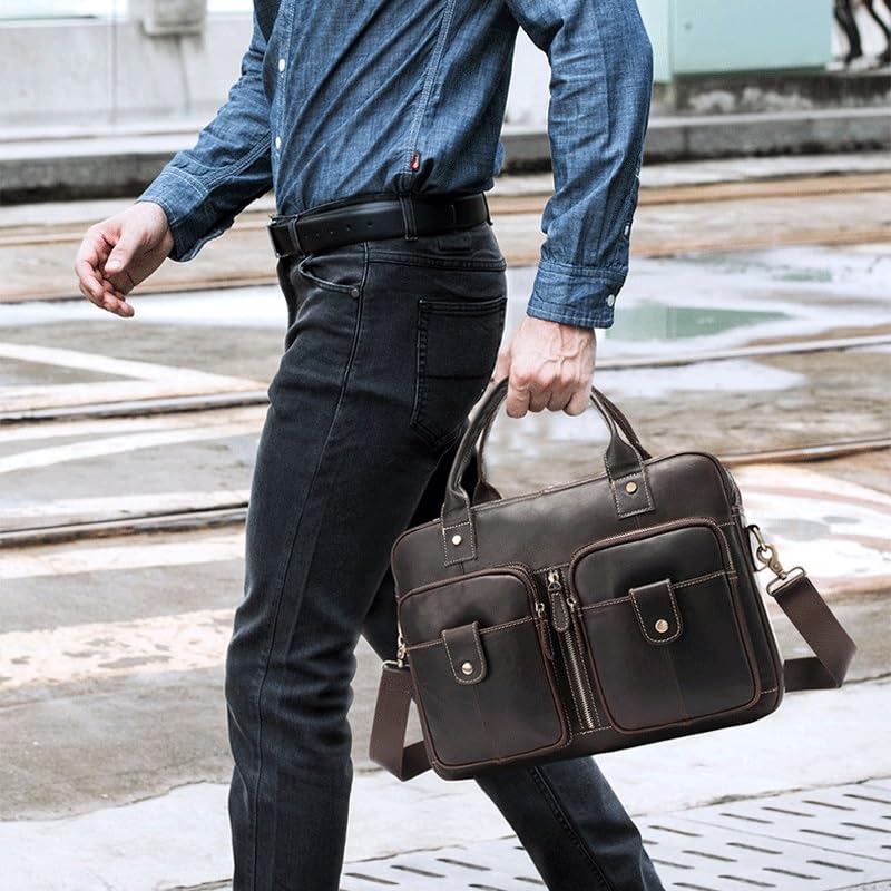 More information about Briefcase Horizontal Commuter Bag Business First Layer Cowhide Tote Vintage Oil Wax Leather Men's Bag