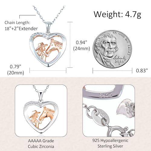 HOT ! Horse Necklace and Cowgirl Necklace, Sterling Silver Heart Pendant, Western Jewelry for Valentine's Day Gifts, Ideal for Equestrian Lovers and Country Style Enthusiasts
