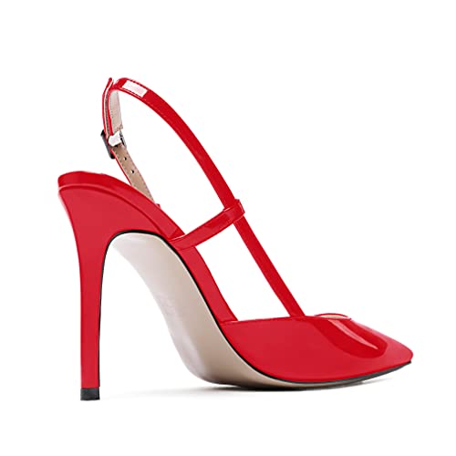 WAYDERNS Women's Buckle Slingback Ankle Strap Solid Pointed Toe Patent Leather Stiletto High Heel Pumps Shoes 4 Inch 5