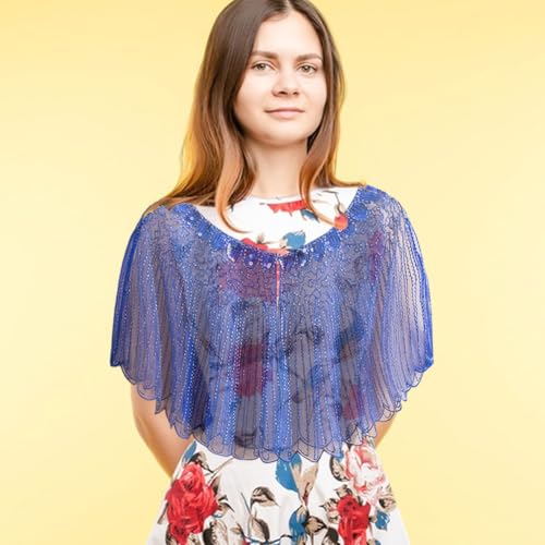 Zcargel Women Sequin Cape 1920S Vintage Style Lace Stole Wraps Wedding Party Scarf Cape Jacket Embellished Bridal Shawl 1