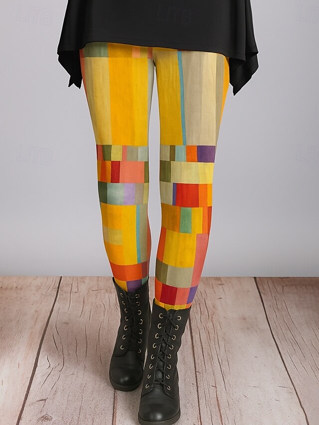 More information about Women's Leggings Vacation Vintage Ethnic Style Ankle-Length High Waist Graphic Plaid Checkered Abstract 3D Print Quick Dry Breathability Soft Stretchy Outdoor Home Causal Yellow Red Gray Fall Regular
