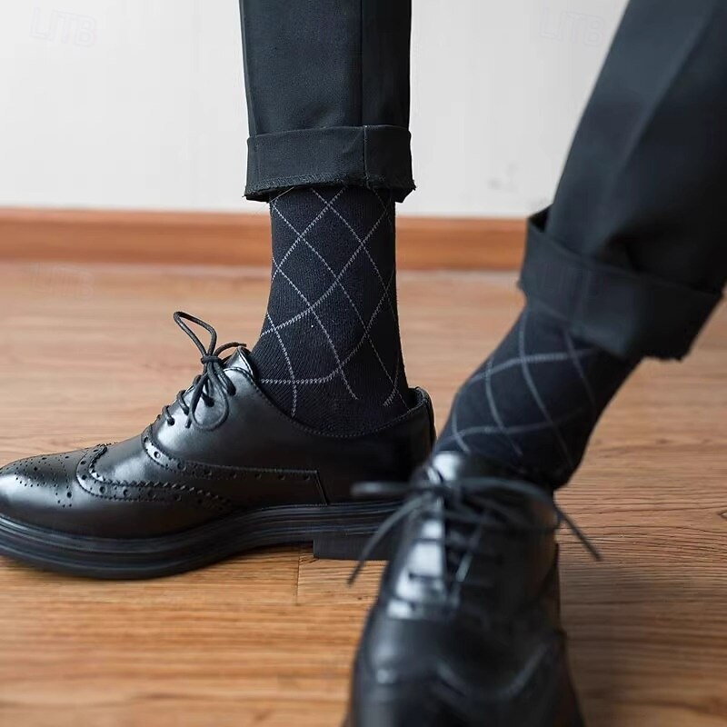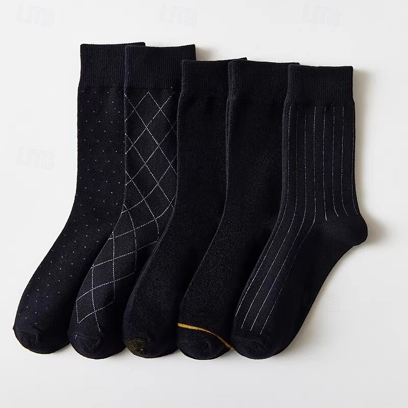 More information about Men's 5 Pairs Multi Packs Socks Running Socks Casual Socks Black+beige Black Color Argyle Vacation Sports & Outdoor Daily Basic Medium Spring Fall Fashion Casual
