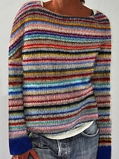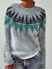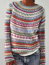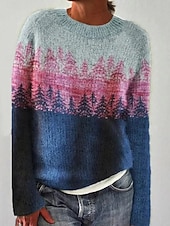 More information about Women's Sweater Casual Soft Geometric Ribbed Crew Neck Knitted Long Sleeve Regular Tops Knit Outdoor Daily Weekend Royal Blue Blue Fall Winter