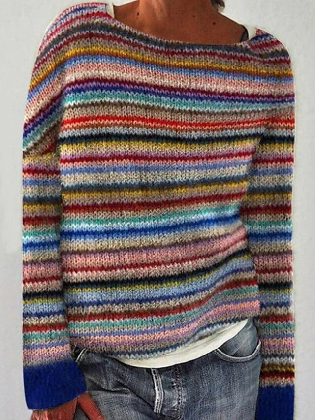 HOT ! Women's Sweater Casual Soft Geometric Ribbed Crew Neck Knitted Long Sleeve Regular Tops Knit Outdoor Daily Weekend Royal Blue Blue Fall Winter