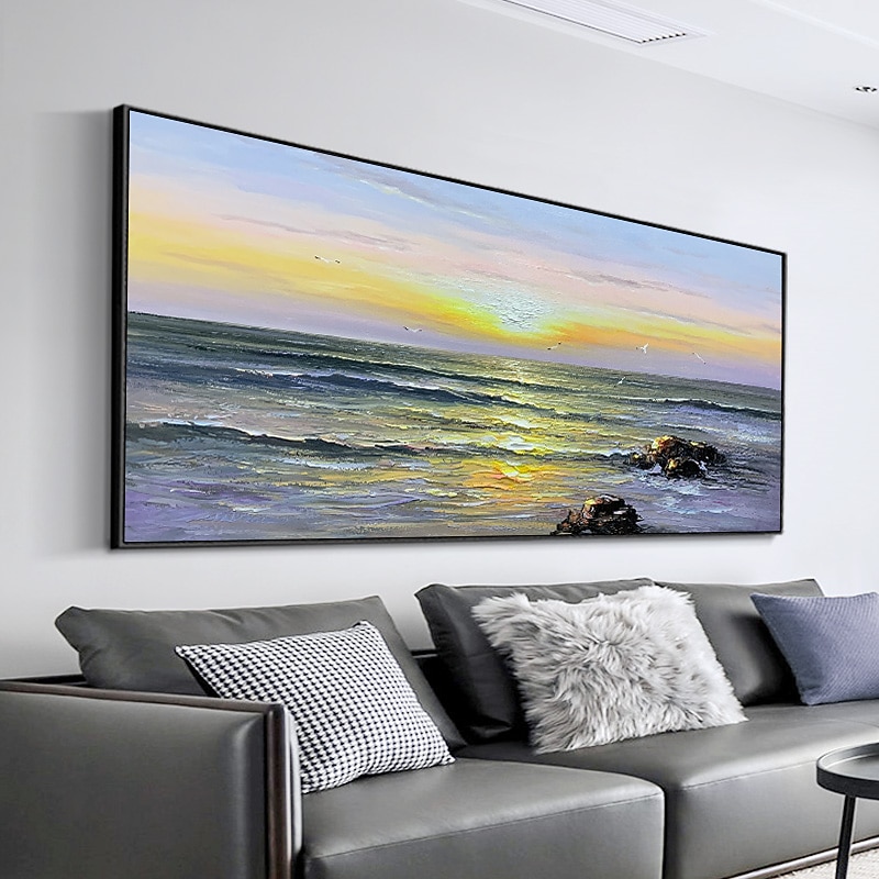 Oil Painting Handmade Hand Painted Wall Art current Abstract Sunrise Seascape Seasore Landscape Home Decoration Decor Rolled Canvas No Frame Unstretched