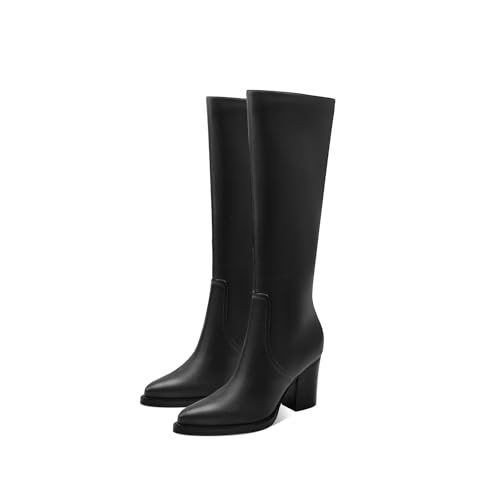 Womens Knee High Boots Retro Chunky Heel Pointed Toe Pull On traditional Knee High Boots for Women Girls Ladies Retro Tall Boot Winter Fall Fashion Boot