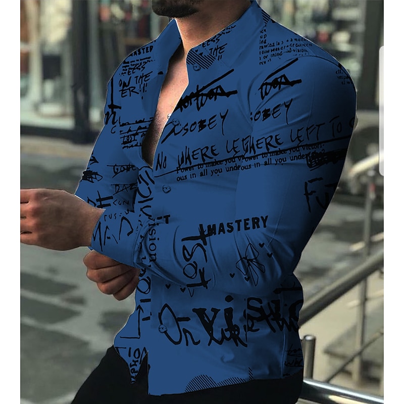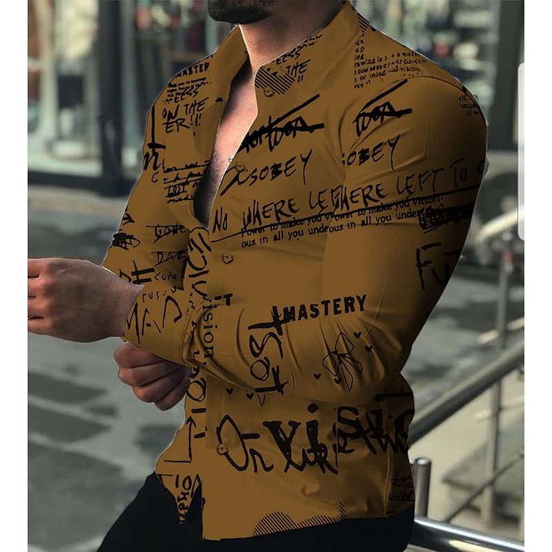 More information about Men's Letter Shirt Button Up Shirt Long Sleeve Fashion Designer Casual Outdoor Casual Holiday Fall & Winter Turndown Print Button-Down White Red Blue Brown Green