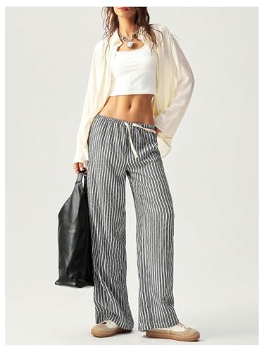 HOT ! MakeMeChic Women's Striped Elastic Waist Drawstring Wide Leg Baggy Palazzo Pants Loose Y2K Trousers Loungewear