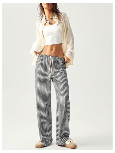 • Features: Striped, loose fit, elastic waist, drawstring waist, wide leg, tie waist, lightweight loungewear for women