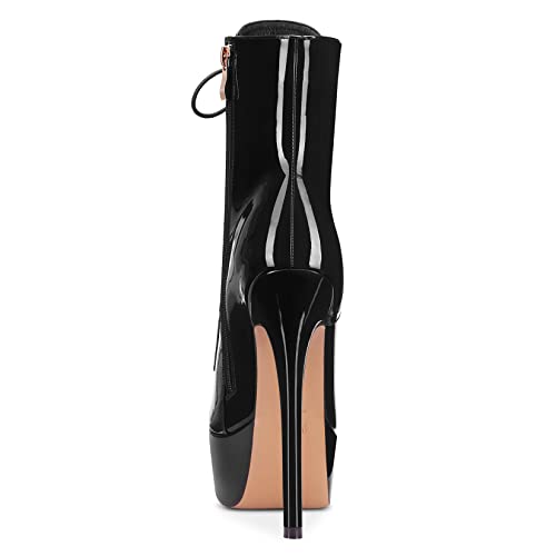 Aachcol Women Ankle Boots Short Bootie Platform Stiletto High Heel Round Toe Dress Shoes Lace-up Patent 6.5 Inch