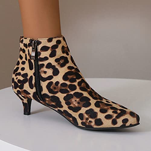 ClassicSter Womens Leopard Print Kitten Low Heel Booties Pointed Toe Faux Suede Ankle Boots with Zip 7