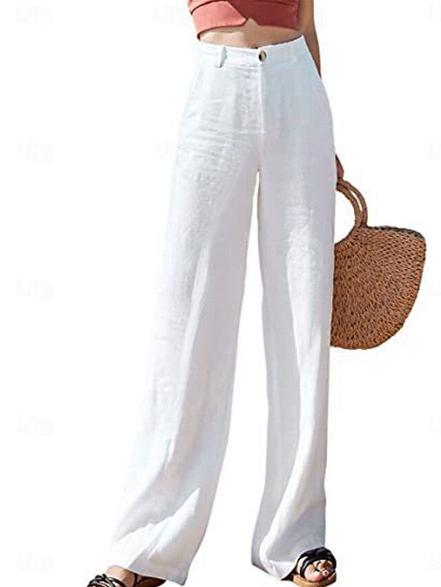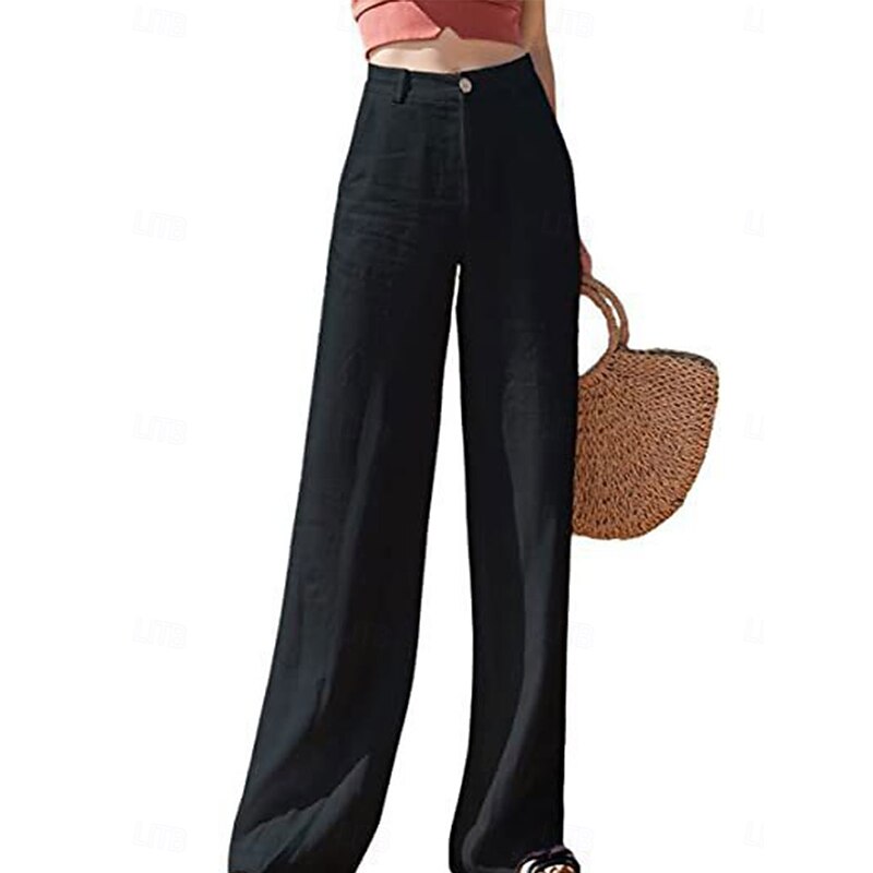 More information about Women's Wide Leg Baggy Pants Solid Color Fashion Basic Full Length High Waist Plain Pocket Comfort Outdoor Micro-elastic Vacation Street Daily Deep Green Black White Summer Spring Regular Fit