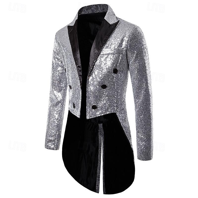 HOT ! Disco 1980s Tuxedo Tailcoat Disco Sequins Fancy Dress Men's Carnival Costume Masquerade Party Club Pride Parade Adults' Coat