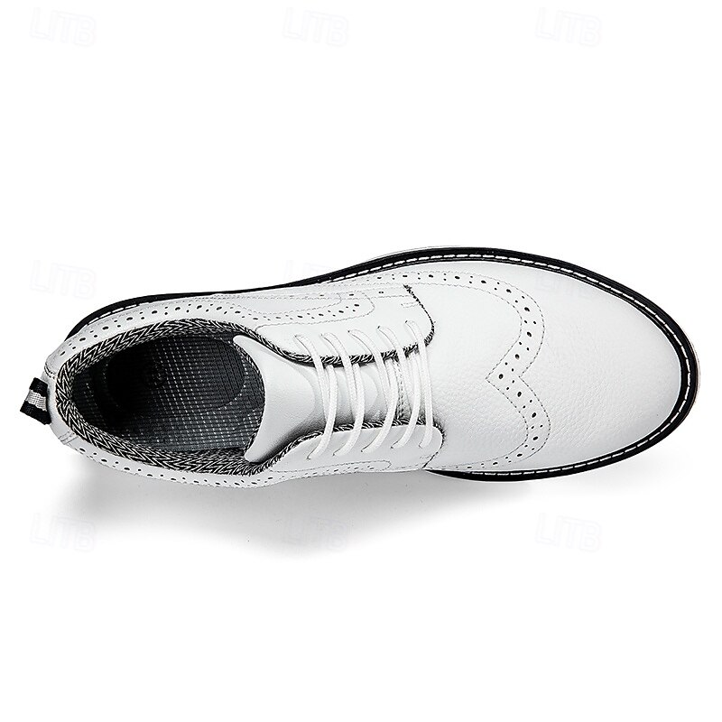HOT ! Men's White Brogue Golf Shoes – Durable Faux Leather Lace-Up Sneakers with Perforated Detailing for Golf and Sports Enthusiasts