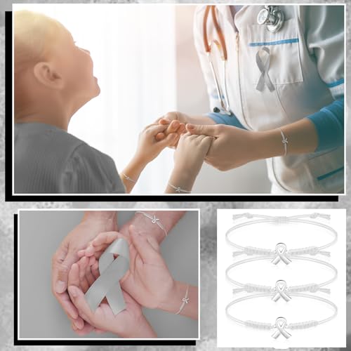 Sasylvia 20 Pcs Lung Cancer Awareness Bracelets Adjustable Cord Stretch White Ribbon Braided Bracelets Inspirational Lung Cancer Gifts for Men Women Jewelry Accessories