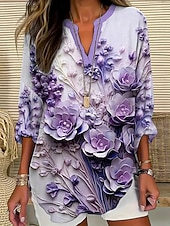 More information about Women's Blouse Tunic V Neck Long Sleeve Boho Casual Floral Graphic Vintage Daily Stylish Notched Neck Regular Tops Daily Print Light Purple Fall