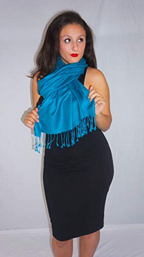 Solid Pashmina Shawl, Scarf, Wrap & Stole (Large size) Teal Green 4